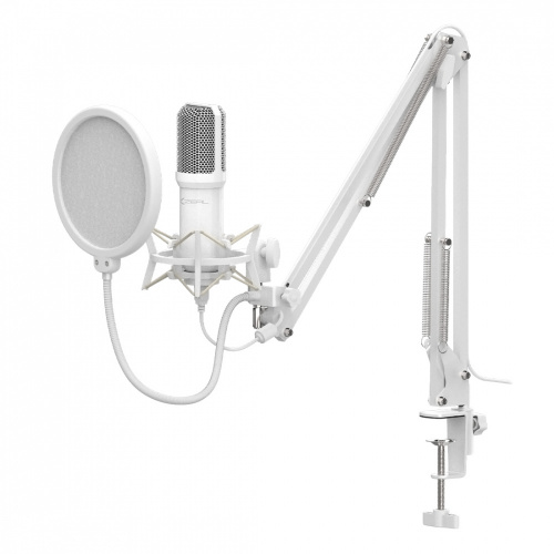 Xzeal Kit Micrófono XZ-260, Alámbrico, USB, Blanco ― Incluye Soporte de Brazo y Filtro Anti-Pop