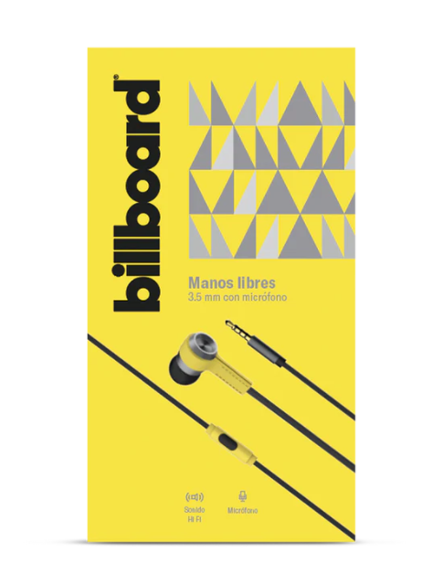 Billboard Audífonos Intrauriculares con Micrófono, Alámbrico, 3.5mm, Amarillo