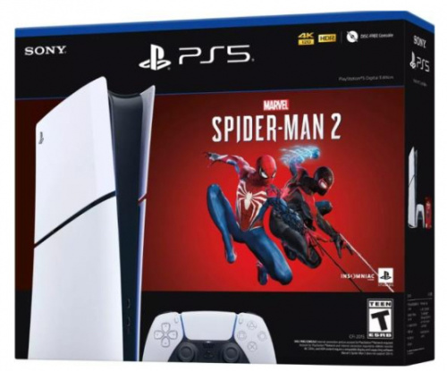 Sony PlayStation 5 Slim Digital Edition 1TB, WiFi, Bluetooth 5.1, Blanco/Negro - Spider-Man 2
