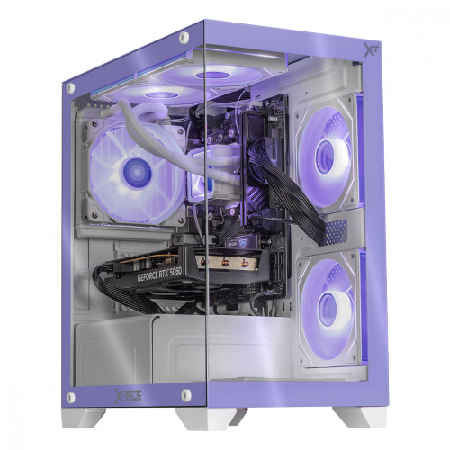 Computadora Gamer Xtreme PC Gaming Crystal Hive Lila, AMD Ryzen 7 5700, NVIDIA GeForce RTX 5060, 32GB, 1TB SSD, Wi-Fi, Windows 11 Prueba