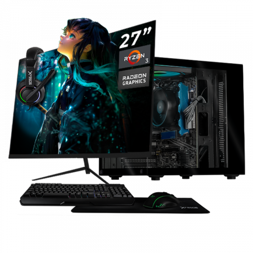 Computadora Xtreme PC Gaming CM-05567, AMD Ryzen 3 3200G, 16GB, 500GB SSD, Wi-Fi, sin Sistema Operativo + Teclado/Mouse/Monitor de 27"