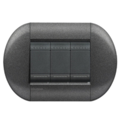 Bticino Placa de Pared LNB4803GF, 3 Puertos, Grafito