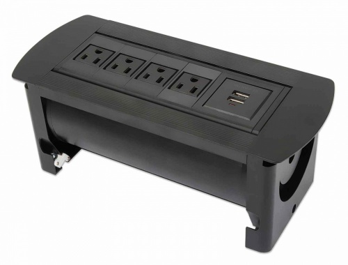 Manhattan Caja para Mesa 164849, 4 Puertos + 2x USB, Negro