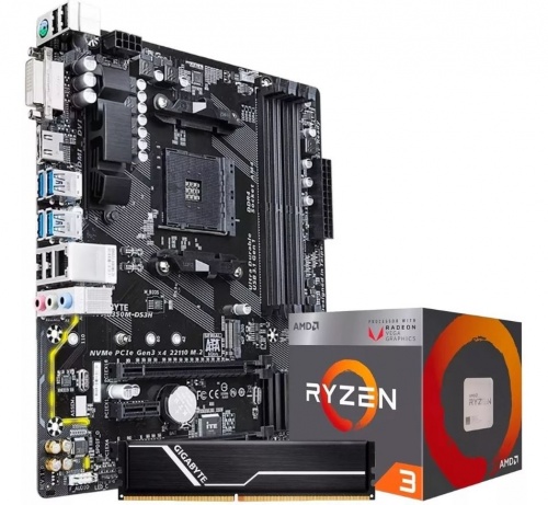Xtreme PC Gaming Kit Gamer Tarjeta Madre Gigabyte microATX GA-AB350M-DS3H, S-AM4, AMD X370, HDMI, 64GB DDR4 para AMD ― incluye Procesador AMD Ryzen 3, 3.60GHz + Memoria RAM Gigabyte DDR4, 2666MHz, 8GB