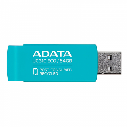 Memoria USB Adata UC310 ECO, 64GB, USB 3.2, Lectura 100 MB/s, Verde