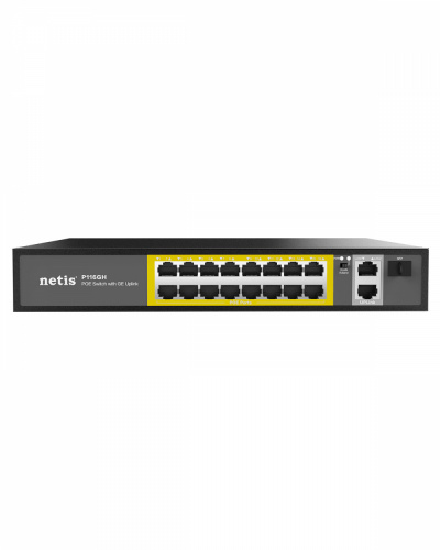 Switch Netis Fast Ethernet P116GH, 16 Puertos PoE 10/100Mbps + 2 Puerto Uplink, 200W, 9.2 Gbit/s, 8000 Entradas - No Administrable