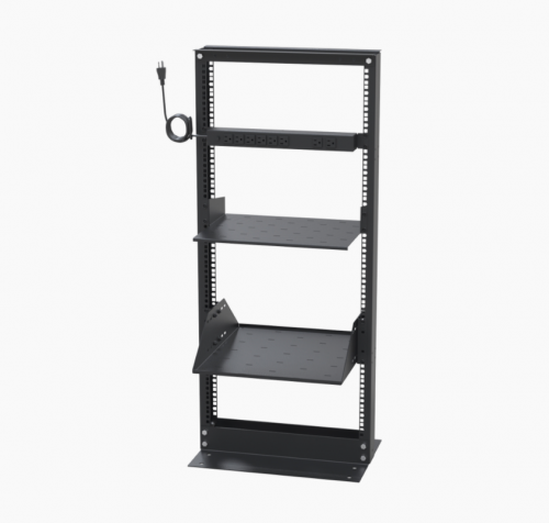 LinkedPRO Rack Abierto de 2 Postes 19", 24UR, hasta 460kg, Negro — Incluye 2 Charolas y 1 PDU de 8 Tomas
