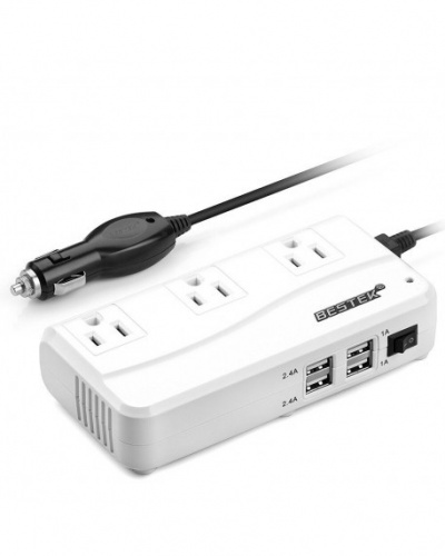 Bestek Cargador para Auto MRI2011GU, 500W, 4 Puertos USB 2.0, 3 Salidas AC, Blanco