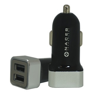 Naceb Cargador para Auto NA-602, 5V, 2x USB 2.0, Negro