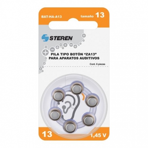 Steren Pila de Botón ZA13 para Aparatos Auditivos, 1.45V, 6 Piezas