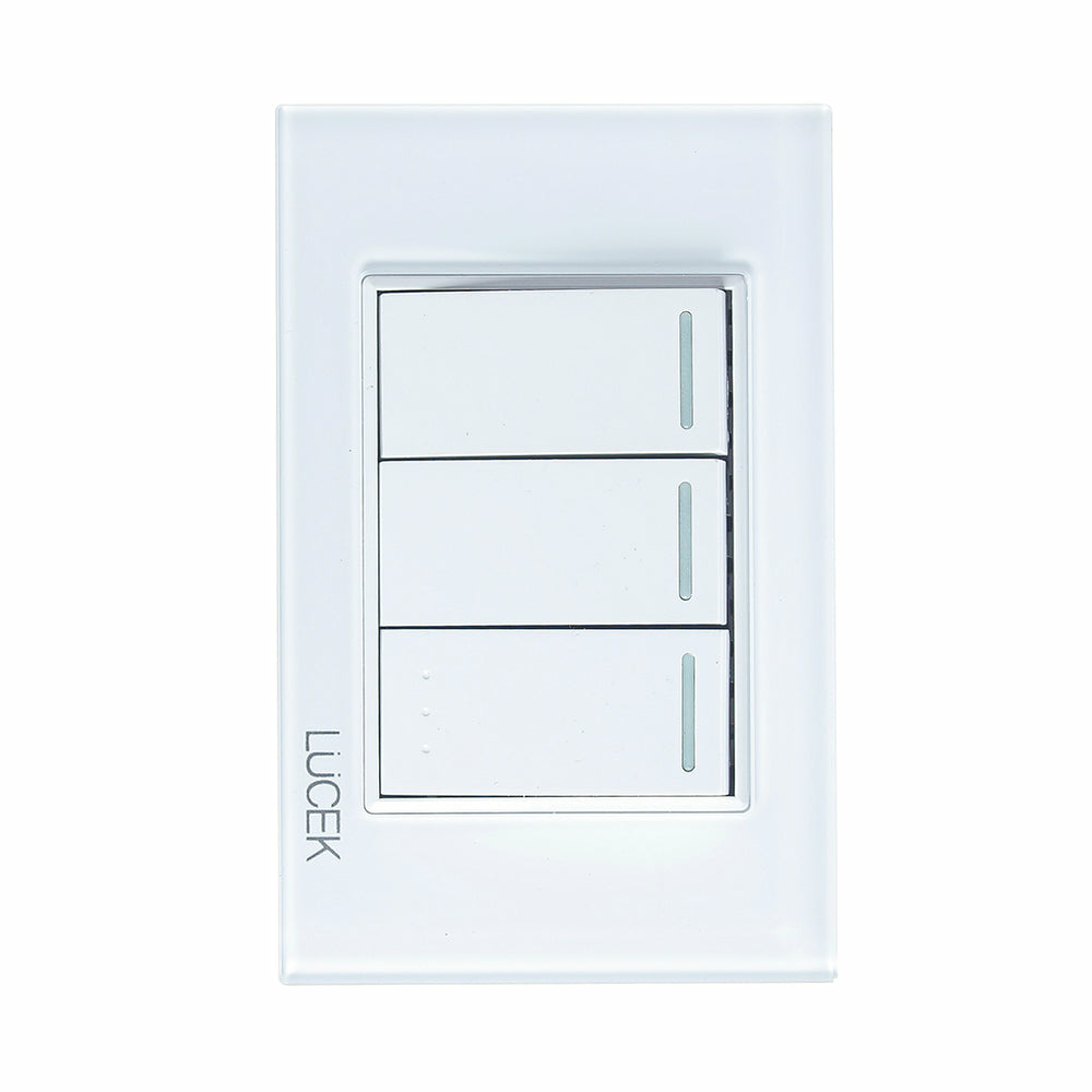 Lucek Placa con Apagador BP03/3-KB, 3 Interruptores, 127 - 250V, 16A, Blanco Mate