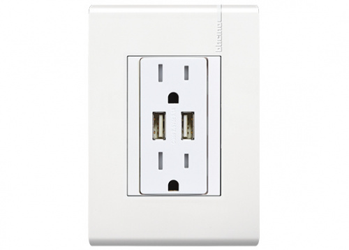 Bticino Tomacorriente E6028NUSBPTL, 4 Enchufes, 127 - 250V, 15A, Blanco