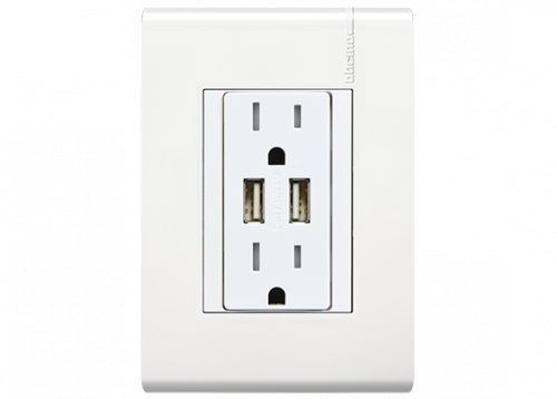 Bticino Tomacorriente E6028NUSBPTLN, 2 Enchufes, 127V, 15A, Blanco