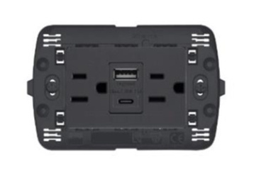 Bticino Tomacorriente L4188AC, 2 Enchufes + 1x USB-A/1x USB-C, 127V, Negro