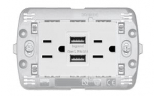 Bticino Tomacorriente N4188AA, 2 Enchufes, 2x USB A, 127V, Blanco