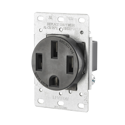 Leviton Tomacorriente Industrial 279-S00, 1 Enchufe, Nema 14-50R, 125 - 250V, 50A, Negro