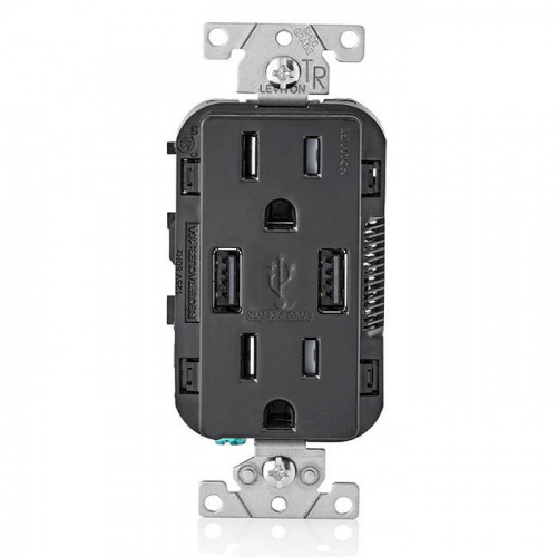 Leviton Tomacorriente T5632-00E, 2 Enchufes, 2x USB, 125V, 15A, Negro