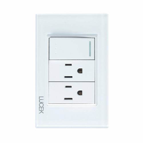 Lucek Tomacorriente BP14-CBB, 2 Enchufes + 1 Apagador, 110 - 250V, 16A, Cristal Blanco