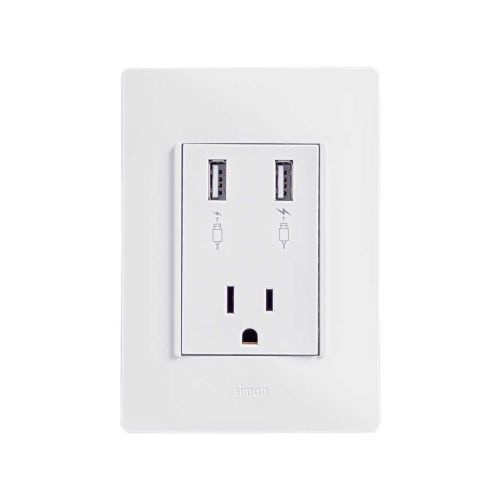 Simon Tomacorriente 2600454-060, 1 Enchufe, 2x USB-A, 110 - 125V, Blanco