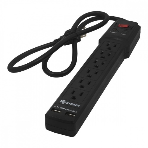 Steren Barra Multicontactos 905-3005, 6 Salidas, Negro