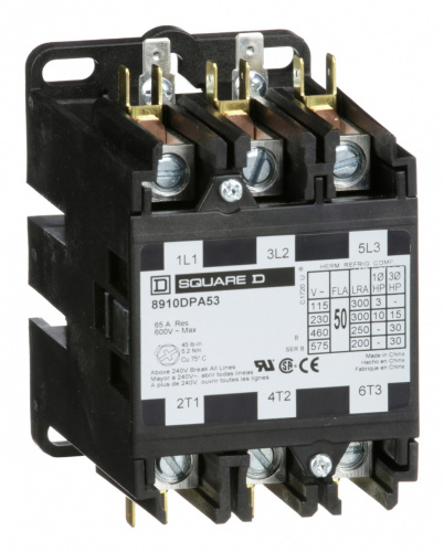 Schneider Electric Contactor 8910DPA53V09, 3 Polos, 208-240V, 50A