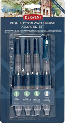 Derwent Set de Pinceles con Depósito de Agua, para Acuarela, 4 Piezas