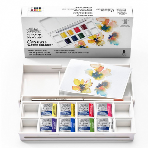 Winsor & Newton Set de Pastillas Acuarelas con Pincel para Naturaleza, 8 Colores
