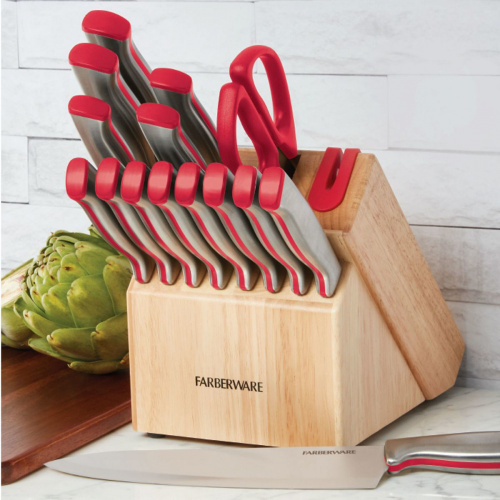 Vasconia Juego de Cuchillos Farberware, 16 Piezas, Acero Inoxidable, Rojo
