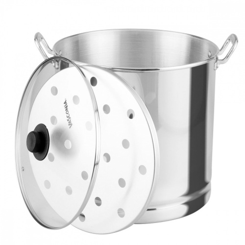 Vasconia Vaporera 4029796, 28cm, 3 Piezas, Tapa de Vidrio, Aluminio