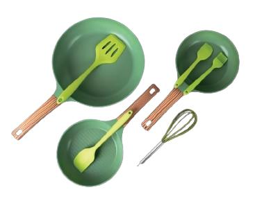 Queen Sense Juego de Sartenes Jade, 3 Piezas, Antiadherente, Cerámica, Verde