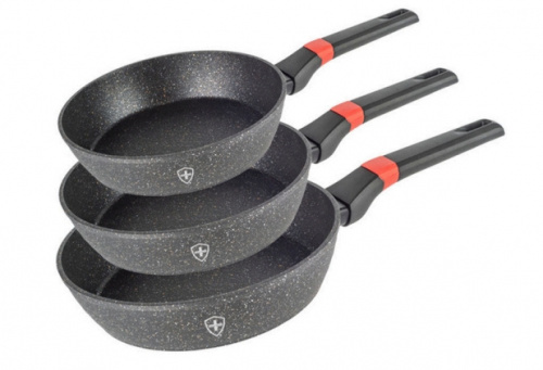 Swiss Silver Juego de Sartenes CM202428, 3 Piezas, Antiadherente, Aluminio, Negro
