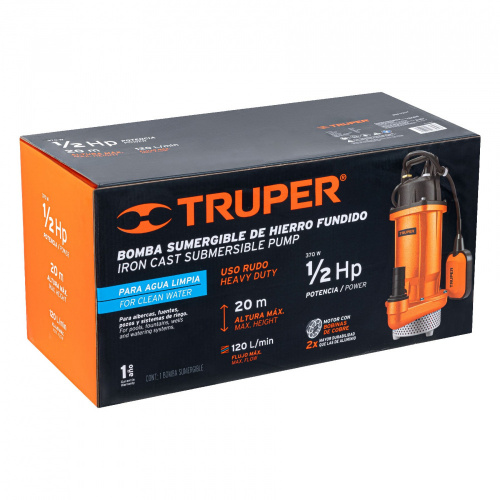 Truper Bomba Sumergible BOS-1/2LH, 7200L/h, 1/2HP, Naranja/Negro