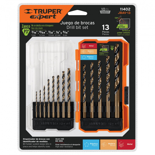 Truper Juego de Brocas para Madera/Metal JBAV-13, 13 Piezas