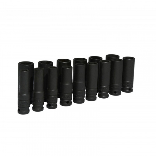 Urrea Juego de Dados de Impacto Largos 73214M, 1/2", 15 Piezas, Negro