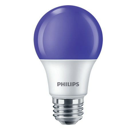 Philips Foco LED 8A19, Púrpura, Base E26, 8W, 120 Lúmenes, Blanco