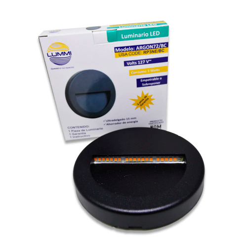 Lummi Lámpara LED para Pared RP3NE/BC, Interiores, Luz Fría, 3W, 200 Lúmenes, Negro, para Iluminación Comercial/Casa