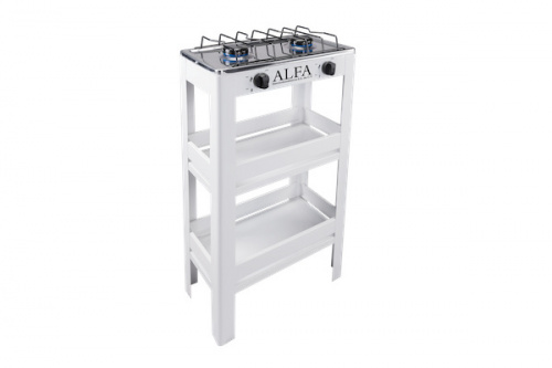 Alfa Parrilla de Gas 404, 2 Quemadores Regulares, Negro/Plata, con Estante