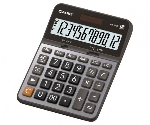 Casio Calculadora de Escritorio DX-120B, 12 Dígitos, Pila/Energía Solar, Gris
