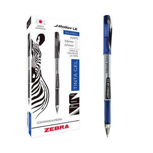 Zebra Papeleria BolĂgrafo de Gel J-Roller LE, Punto Fino 0.5mm, Azul, 6 Piezas