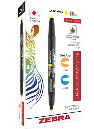 Zebra Papeleria Marca Textos J-Roller HL, Amarillo, 6 Piezas