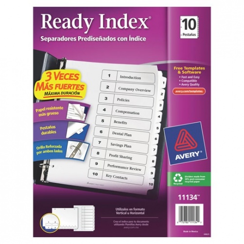 Avery Separadores Prediseñados con Índice 11134, 10 Divisiones, Tamaño Carta, Blanco
