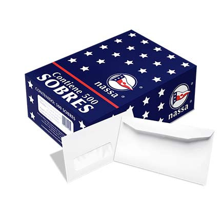 Nassa Sobre de Correspondencia con Ventana HA0081, 500 Piezas, 9.2 x 16.4cm, Color Blanco