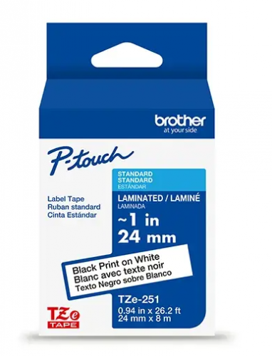 Brother Cinta TZE251G Negro sobre Blanco, Transferencia Térmica, 24 mm x 8 Metros, 1 Pieza