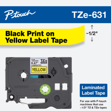 Brother Cinta TZE631G Negro sobre Amarillo, Transferencia Térmica, 12 mm x 8 Metros, 1 Pieza