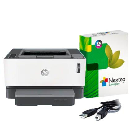 HP Neverstop Laser 1000a, Blanco y Negro, Láser, Print — Incluye Cable USB Vorago CAB-104 y Resma de Papel Copiadora Nextep Ecológico Carta C/500 Hojas