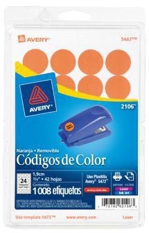 Avery Etiqueta Redonda 2106, 1008 Etiquetas de Diámetro 3/4'', Naranja