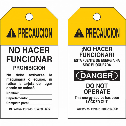 Brady Etiqueta de Precaucion, 5.75" x 3", 25 Etiquetas, Negro/Amarillo/Blanco
