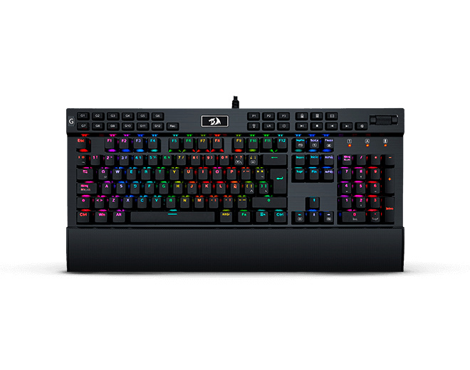 Eso de que es "gigante", no tiene sentido. Me explico: lo que tiene de más está a la vista en la zona de arriba, que son las teclas multimedia y las teclas G para macros, es decir, objetivamente, tiene 4 centímetros más que los teclados full convencionales, esa es la realidad. Los alerones de aluminio, a lado y lado, son ligeramente más grandes que en muchos otros teclados, tienen 1 centímetro más, pero le otorga solidez y un estilo aún más refinado.