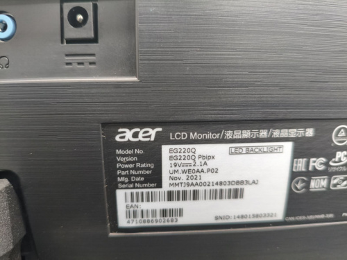 Monitor Gamer Acer EGO EG220Q Pbipx LCD 21.5", 1920x1080 Full HD, FreeSync, 144Hz, HDMI/DisplayPort, Negro ― Equipo utilizado en oficina, con detalles de uso. Incluye eliminador de voltaje y cable DisplayPort (DP).