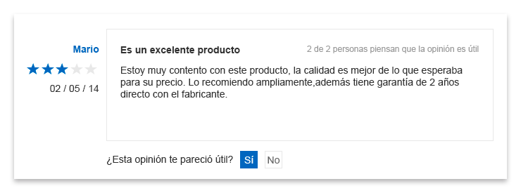 Tus opiniones aparecerán en la página del producto